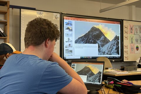 Alle Klassen sind mit einer digitalen Tafel ausgestattet. Zudem stehen den Schülerinnen und Schülern ausreichend Tablets und Laptops zur Verfügung.